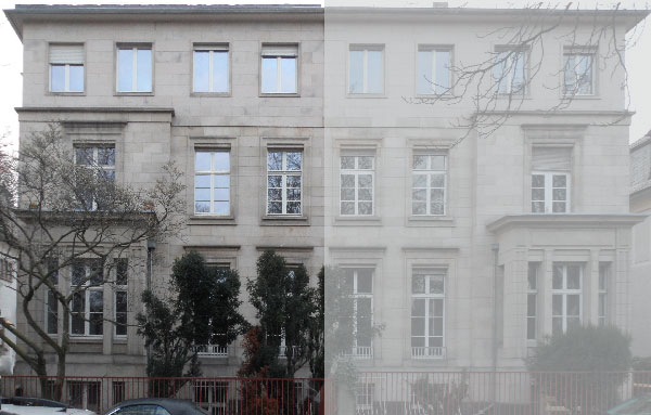 Die nächste Generation Sanierung und Instandsetzung einer neoklassizistischen Doppelvilla im Frankfurter Westend nach den Regeln des Denkmalschutzes. (Lp.1-8) Erbaut wurde das Wohngebäude 1913 für eine Frankfurter Bankiersfamilie nach einem Entwurf des Architekten A.Schaedel. Nach dem 2. Weltkrieg setzte der nächste Besitzer das kriegsbeschädigte Gebäude instand und nutzte es als "Webstuhlersatzteilfabrikfabrik", bis es 2011 erneut den Besitzer wechselte. Thema: Die nächste Generation: Modernes Wohnen und Arbeiten in einem Denkmal. Sanierungsthema: Sanierung von neoklassizistischen Texturen und Zeitschichten der Nachkriegsjahre. Integration moderner Wohnansprüche in ein Denkmal. |